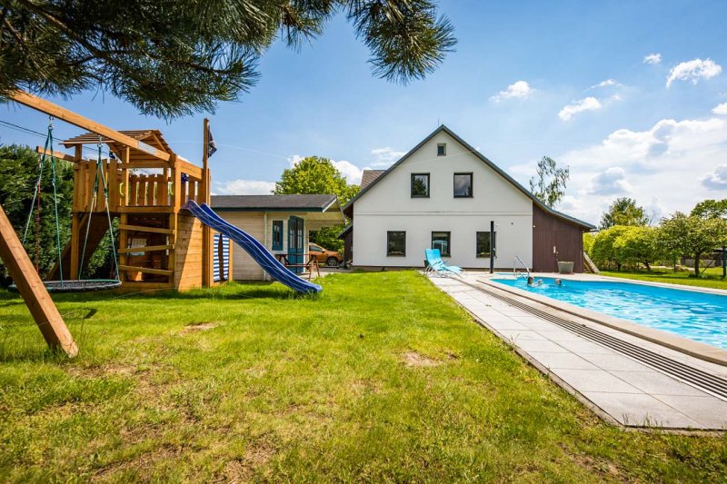 Vila Les Království je rozdělena na dva samostatné prostorné apartmány. Možno zarezervovat i pouze jeden apartmán (pro 8 - 9 osob). Vila se nachází blízko přehrady Les Království (500 m), s výhledem na místní horu Zvičinu (cca 10 km) a s dobrým autobusovým spojením do Dvora Králové (7 km).