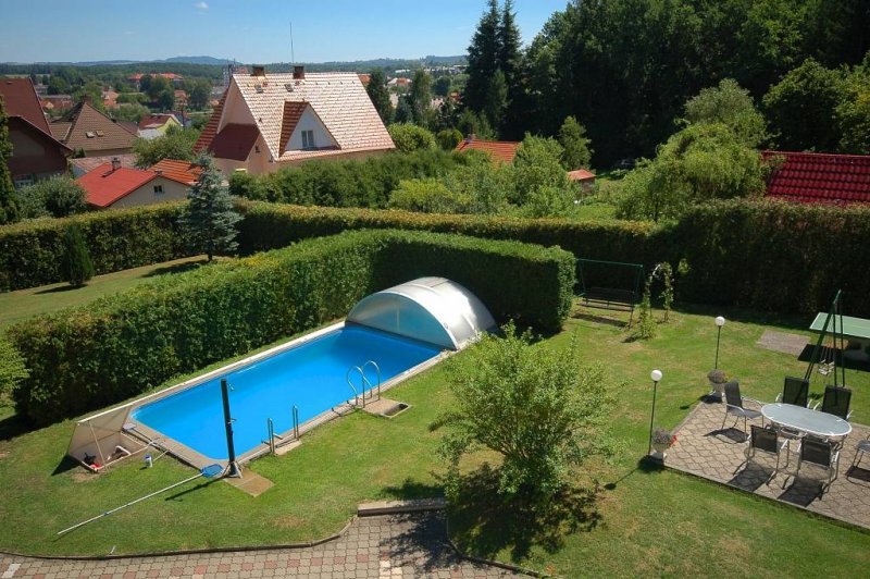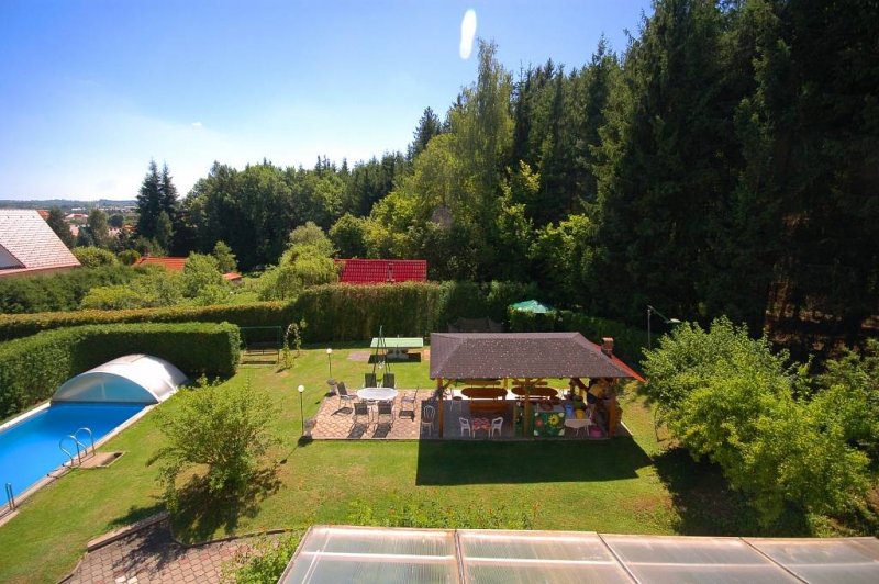 Prvorepubliková vila na okraji obce Planá nad Lužnicí. Vila stojí v těsném sousedství lesa a v blízkosti řeky Lužnice. Hostům je k dispozici pozemek 3000m², kde se nachází venkovní posezení s grilem, zastřešený bazén ( v provozu červen - září), venkovní vířivá vana pro 3 osoby, venkovní sprcha a travnatá plocha pro odpočinek, travnaté hřiště na volejbal, trampolína pro děti, pískoviště, pétanque a ohniště.