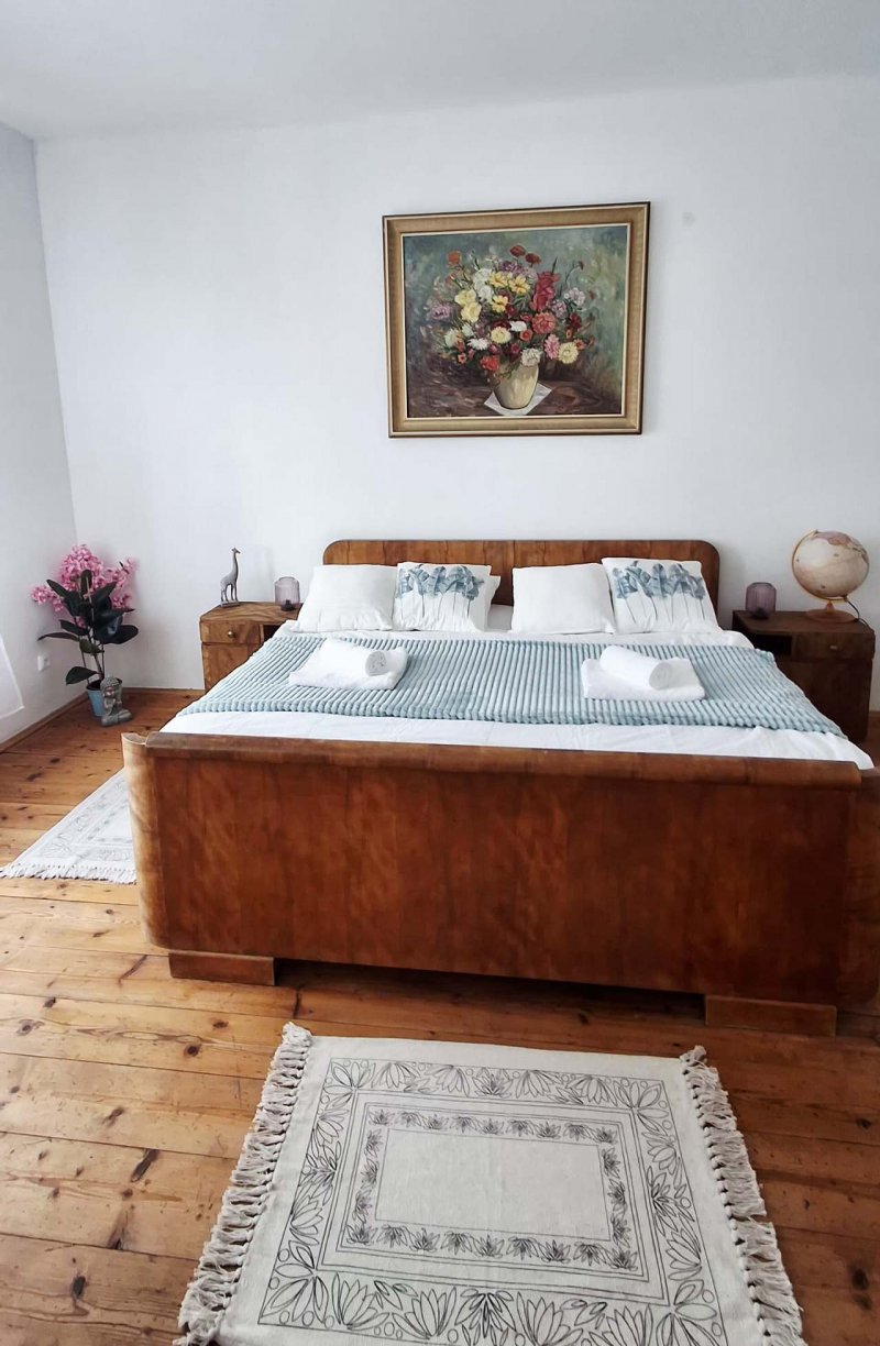 Apartmán v přízemí prvorepublikové vily nabízí pohodlné ubytování pro 6 osob. Nachází se v srdci Českého ráje, v obci Mladějov, na oploceném pozemku s vlastní zahradou (cca 700m²), fóliovníkem a 4 zeleninovými záhony s možností konzumace pro vlastní potřebu. U nás se z vás stávají zahradníci :-)