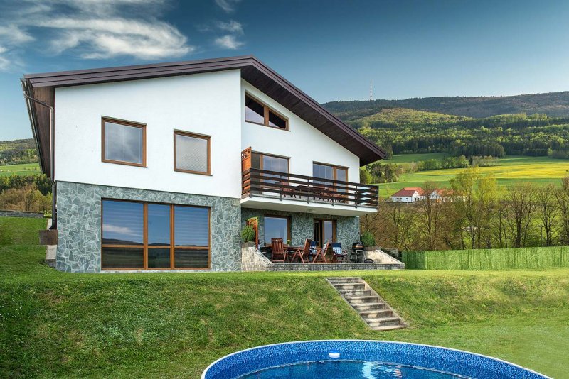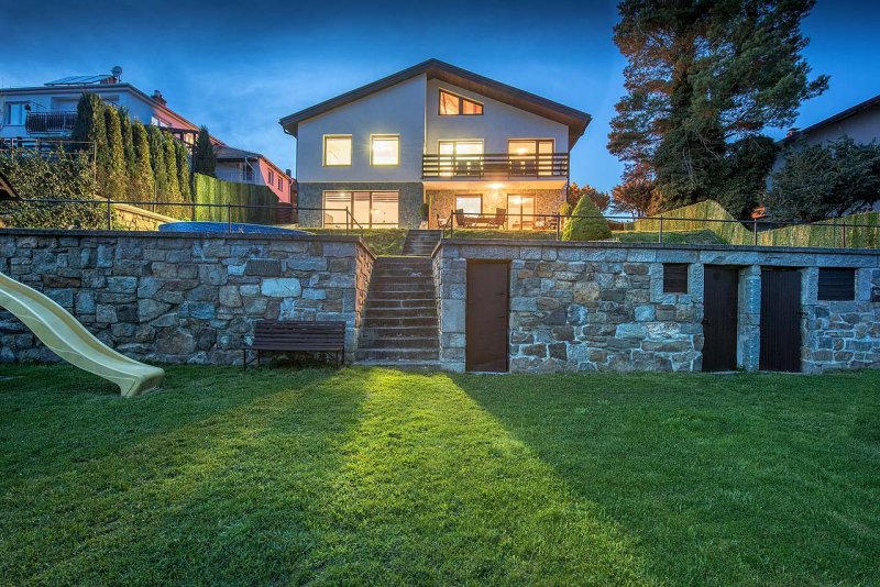 Dům je vhodný pro rodiny s dětmi i skupinu přátel, má čtyři ložnice, velkou společenskou místnost, teleskopický fotbálek, dětský koutek, velkou zastřešenou terasu, dvě koupelny, balkon, gril, trampolínu, Dětské hřiště, bazén, v celém domě WiFi. Parkování v kryté garáži.