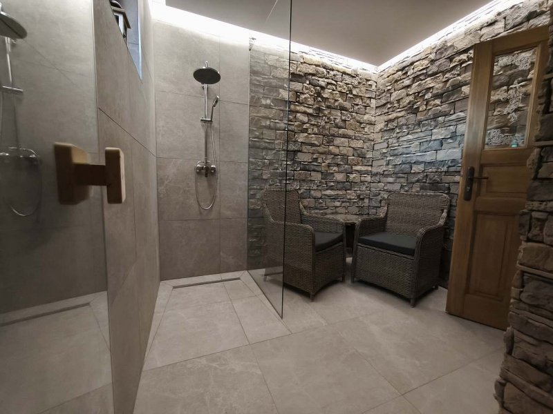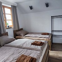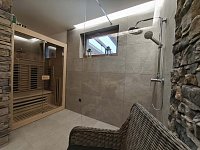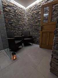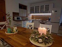 V patře vinného sklepa jsou dva pokoje pro 3 a 4 osoby. Každý pokoj má svou koupelnu a WC. Přízemí nabízí plně vybavenou kuchyň s jídelnou, wc a wellness. Ve sklepních prostorách najdete degustační místnost s kapacitou až 18 osob, která je ideální pro posezení u sklenky vína, a kvelbený vinný sklep s archívem. Součástí objektu je také zastřešená terasa s posezením a grilem. V zadní části dvora máme uzamykatelné stání pro kola, což ocení zejména milovníci cykloturistiky.