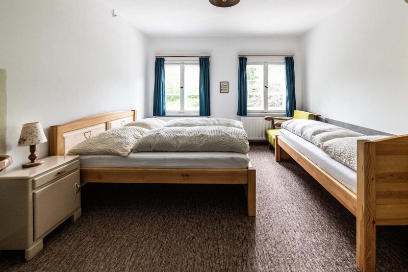 Penzion Schneider s venkovní finskou saunou a přírodním jezírkem - ubytování Krušné hory. Pravou horskou chalupu - penzion Schneider - najdete na německé straně Krušných hor, pouhých 5 km od Božího Daru. Z dorozumívání nemusíte mít obavy, majitelé jsou totiž Češi. Kdo hledá návrat k přírodě, jednoduchosti a celkové harmonii, je u nás na správném místě. Penzion nabízí nefalšovanou romantiku a soukromí v malebném horském údolí, nadšení budou zejména milovníci panenské přírody toužící uniknout všudypřítomným davům turistů. Dvě stě let staré stavení, původně mlýn a horská poštovna, láká svou nenapodobitelnou atmosférou, podtrženou stylovým krušnohorským nábytkem a pravými kachlovými kamny. Ubytovat se můžete v sedmi 2 – 4 lůžkových pokojích s umyvadlem (celkem 18 osob), sociální zařízení je společné na chodbě - dvě koupelny se sprchovým koutem a wc. V přízemí můžete využít k posezení příjemnou společenskou místnost s kachlovými kamny, kuchyň a dětskou hernu, na přání lze zajistit podávání snídaní a točené regionální pivo. Venku je k dispozici prostorná zahrada s posezením a venkovním ohništěm, dětské hřiště a venkovní finská sudová sauna s jedinečným koupacím jezírkem. Vedle relaxace v tomto kouzelném koutu Krušnohoří můžete využít nepřeberné množství cyklotras a pěších stezek, v zimě běžeckých stop, které začínají přímo nad chalupou. Příjemnou procházkou lesem můžete v létě dojít na Ježíškovu cestu. Děti a lyžaři začátečníci můžou využít menší vlek přímo u penzionu. Další zázemí pro lyžaře (ski areály Neklid, Klínovec, Fichtelberg, Boží Dar aj. ) jsou vzdálená jen několik málo kilometrů. Oblast je zapsána do Kulturního dědictví UNESCO a můžete se tak seznámit s jedinečným prostředím hornické krajiny a navštívit staré štoly a doly. Turistické zajímavosti v okolí - Oberwiesenthal, Boží Dar, Fichtelberg, Loučná pod Klínovcem a Hřebečná.