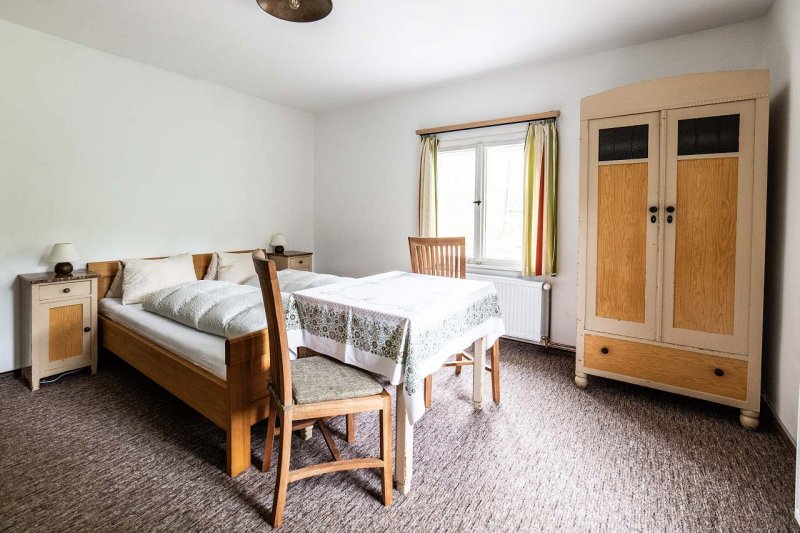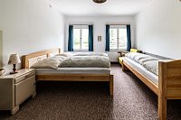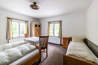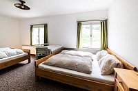 Apartmán v obci Boží Dar: 5 ložnic, celkem pro 1 až 23 osob. Orientační cena (za osobu za noc): léto 525kč, zima 825kč.