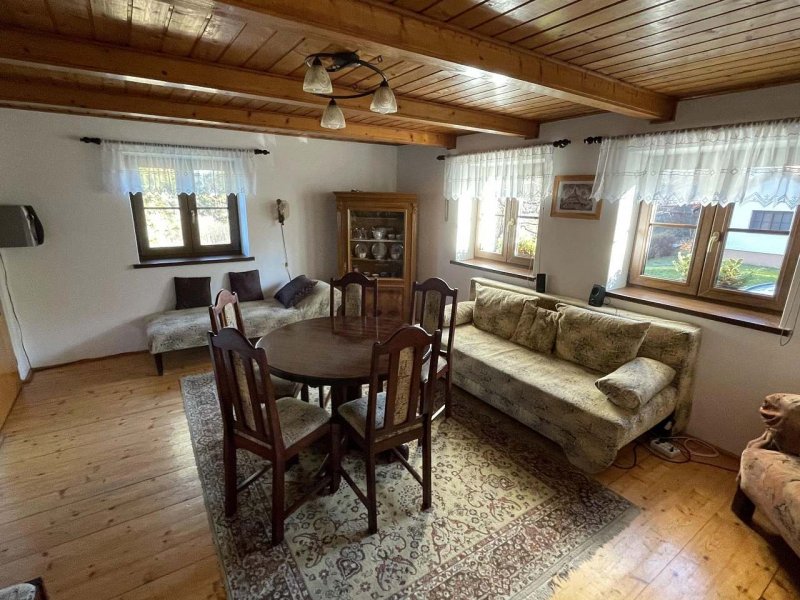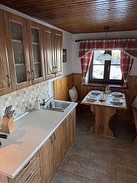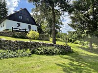 Nabízíme pronájem útulné chalupy, ideální pro rodiny nebo přátele, kteří hledají klid a odpočinek v krásné přírodě. Chalupa je určena pro 6 osob a má dvě ložnice, obývací pokoj, koupelnu s WC a vybavenou kuchyni. Venku je k dispozici prostorná terasa s krásným výhledem do okolí. Pozemek kolem chalupy je velký 5000m² a oplocený je jen částečně. Hranici pozemku vymezuje v horní části u chalupy plot. Část pozemku, která hraničí s loukou a pastvinou je ohraničena keři a dřevěným hrazením s elektrickým ohradníkem. Část pozemku, která hraničí s parcelou souseda je ohraničena vzrostlými keři. Jedná se spíše o optickou hranici, než o neprostupné oplocení.