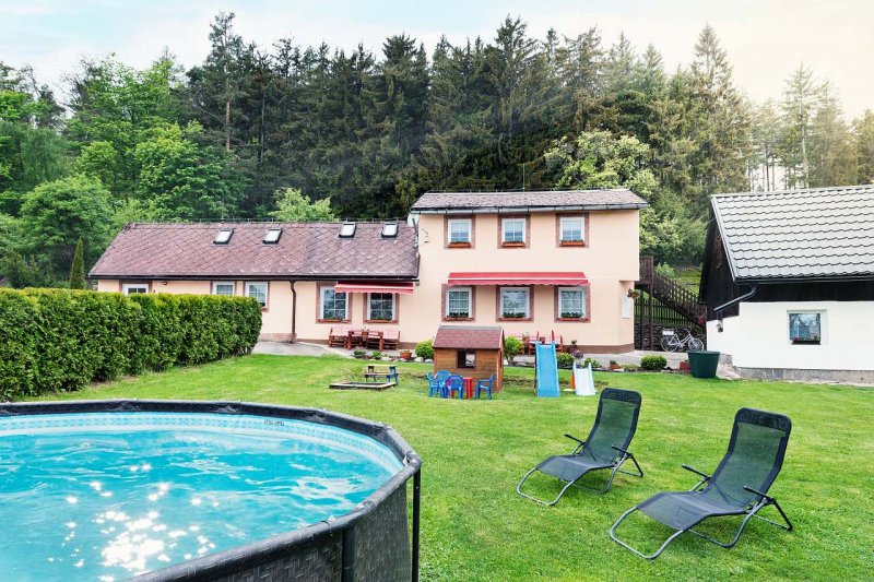 Sedm komfortně zařízených apartmánů v krásném a klidném prostředí u lesa se nachází na okraji centrální části Šumavy jsou ideálním východiskem jak pro letní turistiku tak pro zimní rekreaci v blízkosti lyžařského areálu Zadov cca 3 km. Dům je vhodný pro rodiny s dětmi, je situovaný v zahradě s velkým rodinným bazénem a dětským hřištěm, zcela mimo hlavní silnici na klidném místě. Součástí objektu je vlastní nekuřácká hospůdka s točeným pivem a možností stravování /bufetové snídaně a po dohodě u skupin lze zajistit i polopenze/ vnitřní dětská herna, wellness zona - sauna, vířivka. Masážní salon s bylinno parní lázní nabízí řadu masáží a procedur.