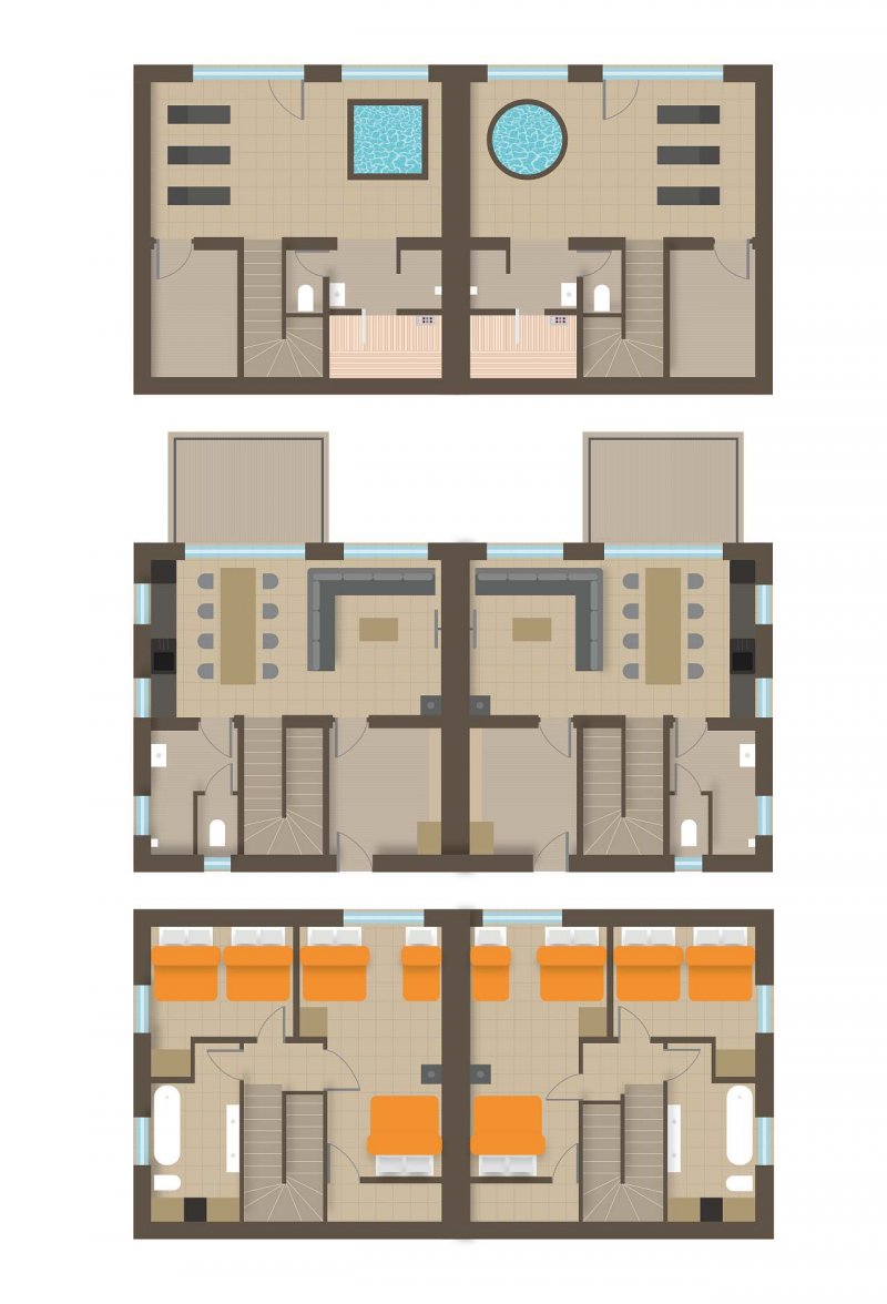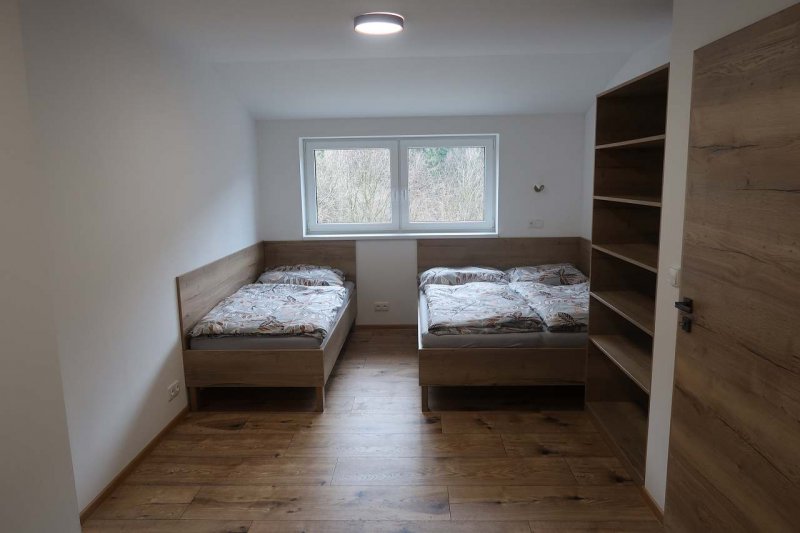 Wellness chata Kouty s finskou saunou a vířivkou. Chata je postavena jako nízkoenergetická stavba o rozměrech 16 x 8,5 metrů a je rozdělena na dvě stejné, zrcadlově otočené poloviny. Každá polovina má svůj vlastní Wellness se soukromou vířivkou a saunou. A v každé polovině je 9 lůžek ve dvou ložnicích. Celá chata je zateplena 20 cm izolací a okny s trojskly, to znamená nízké náklad na vytápění. Vytápění je v celé chatě podlahové napojené na tepelné čerpadlo nebo lze topit i krbem s výměníkem, který rovněž vytápí podlahu. Celý pozemek je oplocen má 1300 m2 a ve spodní části má každá polovina chaty oddělenou zahradu. V horní části pozemku je parkování, houpačky a společný zahradní krb na opékání. Chata byla dokončena v roce 2024.