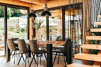 Čerstvě postavený luxusní Wellnes srub MELTONI s dispozicí 5+kk s užitnou plochou 184 m2,který se nachází v malebné obci Velké Losiny v srdci Jeseníků na klidné ulici Bukovická. Je ideální volbou pro rodiny s dětmi, milovníky přírody, zimních sportů a relaxace. Tento luxusní srub kombinuje rustikální kouzlo s moderním komfortem. Interiér je vybaven velkými prosklenými plochami, které poskytují nádherný výhled na okolní přírodu a zajišťují dostatek přirozeného světla. V obývacím pokoji najdete stylový krb, který dodává prostoru útulnost a teplo, ideální pro zimní večery strávené v kruhu rodiny. Představte si horský srub vonící dřevem, útulný, přesto lahodící oku každého milovníka moderního designu. Skleněné tabule přes dvě patra zvou dovnitř světlo a sluneční paprsky, nabízejí tak čarokrásný výhled do okolí. Kouzelné místo pro všechny, kteří hledají pohodu, klid a čerstvý vzduch. Ubytování vhodné pro rodiny s dětmi, setkání přátel, páry toužící po romantice. Okolí nabízí výborné lyžařské a běžkařské terény. V létě využijete velké množství cyklotras i turistických cest, sportovního vyžití a historických památek. Milovníci koupání si přijdou na své v oblíbených, termálních lázních - Velké Losiny. Podívejte se na naše stránky www. srubmeltoni. cz