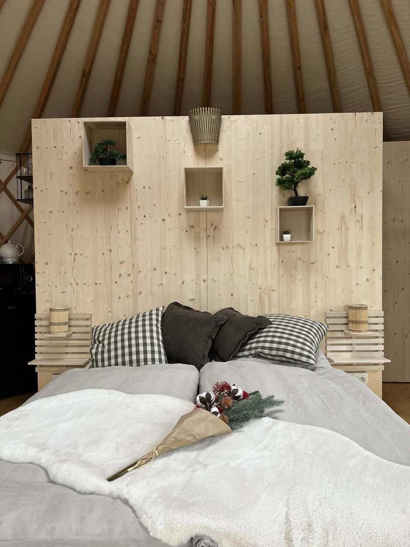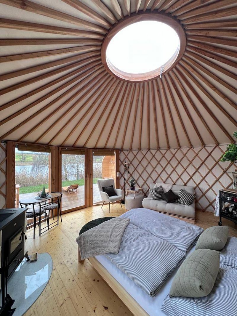 Yurta je romantika sama. Praskající oheň v kamnech, dřevo a jiné přírodní materiály jistě navodí krásnou atmosféru.