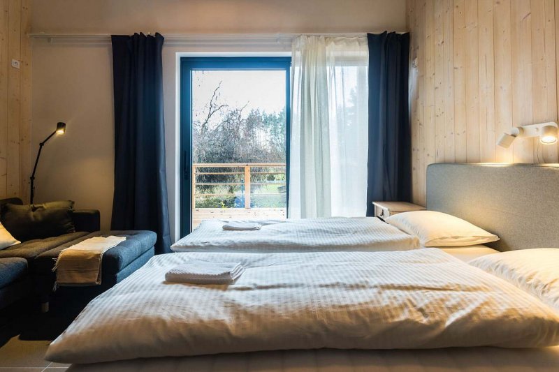 Penzion v obci Vlkov nad Lužnicí: 4 pokoje, celkem pro 1 až 18 osob. Orientační cena (za pokoj za noc): léto 1.790kč, zima 1.513kč.