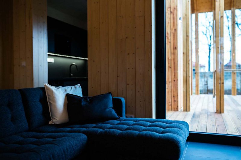 Zastávka Vlkov je unikátní architektonický celek nabízející moderní ubytování v klidné lokalitě jižních Čech, přímo v CHKO Třeboňsko. Areál tvoří tři designově propracované, téměř identické domy se společnou vstupní chodbou. Každý dům je však plně samostatný, oddělený uzamykatelnými dveřmi a poskytuje maximální soukromí i komfort.