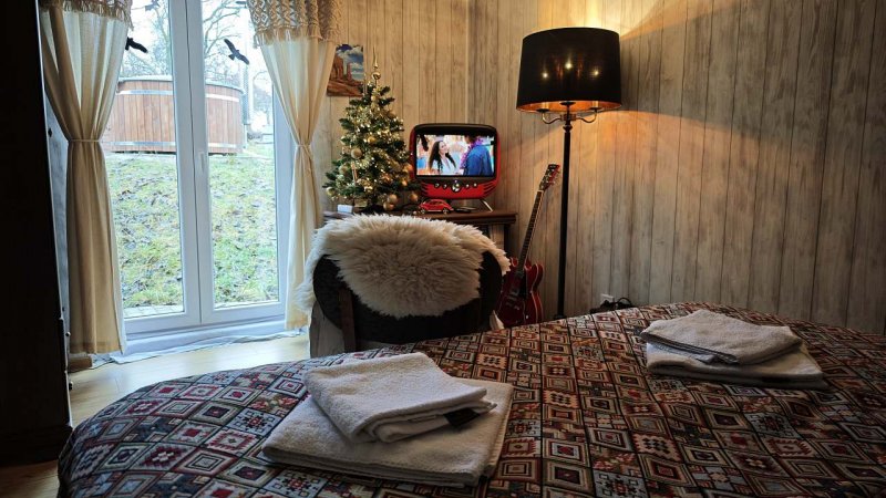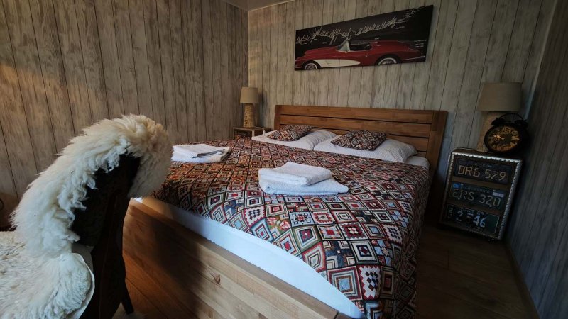 Zlatokopecká chata Arizona s koupacím sudem a saunou patří do části Ranch 66 zvané Oatman , což je stará zlatokopecká obec ležící na Route 66 v Arizoně. Inspirována touto legendární obcí je chata vybavena v retro stylu staré Ameriky. Nechybí funkční jukebox, retro televize, neony, bedny od whiskey, elektrická semiakustická kytara s kombem, krbová kamna a tak dále. Dýchne na Vás doba Rockamp;Rollu, retro atmosféra a klid venkova na polosamotě. Venku na Vás čeká koupací sud s tryskami a LED osvetlením pro romantické večery. Voda je vyhřívaná dřevem. Pokud se rozhlédnete po kraji, uvidíte na jedné straně Svatý Kopeček na Hané a na druhé Hostýn na Valašsku. K dispozici oplocená zahrada 1.700m2 a pokud bude i to málo, lze se vydat do nedalekých stájí, nebo do áleje, či lesa na procházku, nebo na kole někam dále, třeba prozkoumat nádherné historické město Olomouc.