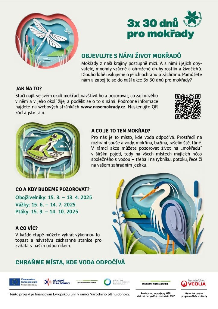 3x 30 dnů pro mokřady, pozorujte mokřadní ptáky a vyhrajte fotopast