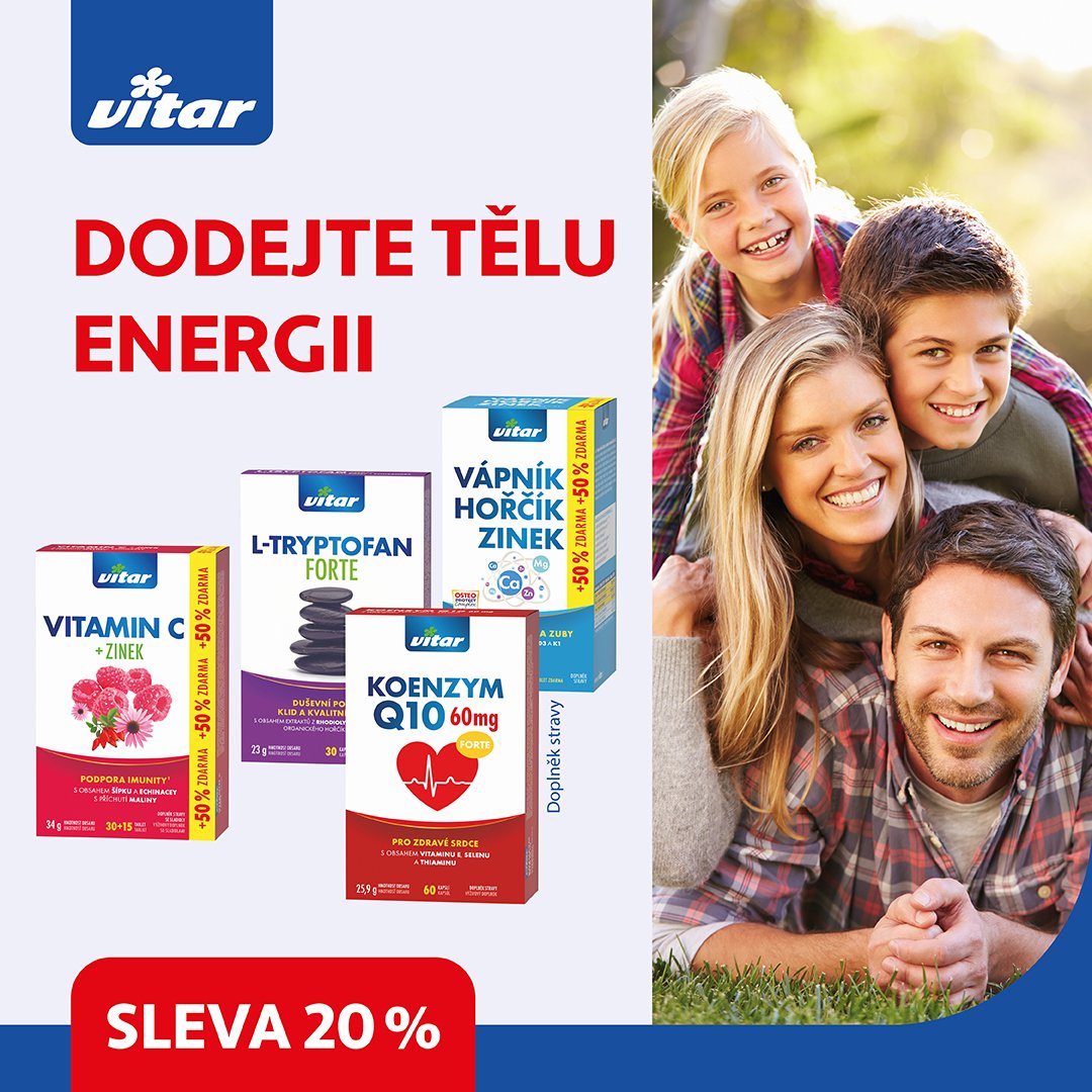 Všechny doporučené doplňky stravy zakoupíte na www.nasevitaminy.cz/znacky/vitar, nyní se slevou 20 %.