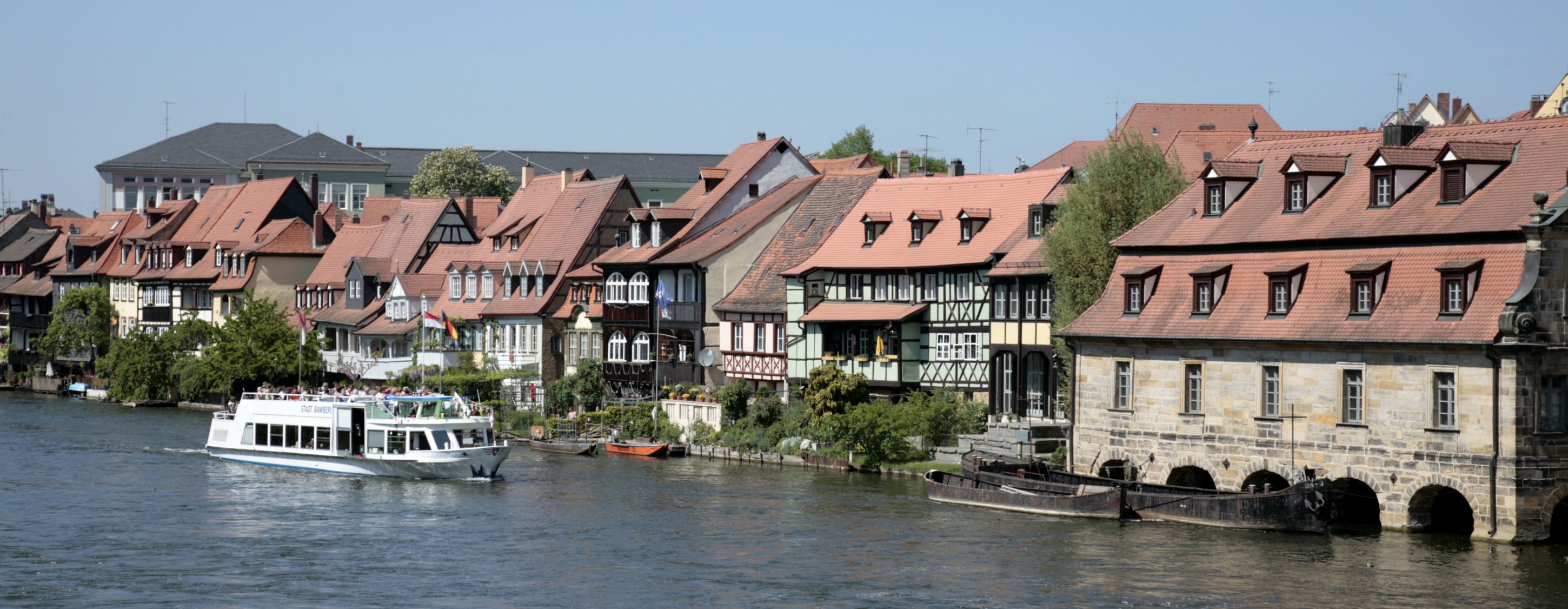 Na seznamu UNESCO jsou zapsány tři historické městské části Bamberku a památkově chráněno je tak více než tisíc budov. Nejstarší část města vystavěnou na sedmi kopcích představuje Bergstadt. Na každém z kopců se nachází jedna z dominant – tou nejvýznamnější je bezesporu císařský dóm Sv. Petra a Jiří. Počátek jeho stavby se datuje už do roku 1002 a i přesto, že pár let po své dostavbě několikrát vyhořel, dochoval si své pozdně románské a raně gotické prvky dodnes. Ze stejné doby pochází i klášter Sv. Michaela. Jelikož ho ale stihl tragický osud při silném zemětřesení a později i požáru, můžeme dnes obdivovat zásluhou bratrů Dietzenhoferů především jeho monumentální barokní přestavbu. Obdivuhodný je nejen při pohledu zvenčí. Uvnitř kláštera se ukrývají bohaté nástěnné malby. Z terasovitých zahrad se pak skýtá výhled na celé město.