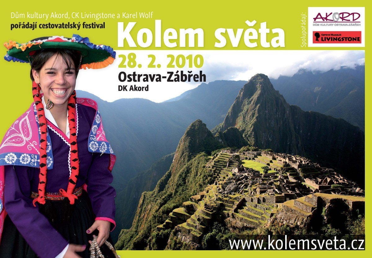 Festival KOLEM SVĚTA je největší cestovatelské setkání v Čechách. Letos se bude konat v Praze, v Brně a poprvé také v Ostravě. Cestovatelé ze severní Moravy se mohou těšit na zajímavý program, který se odehraje v neděli 28.2.2010 ve dvou sálech Domu kultury Akord v Ostravě-Zábřehu.