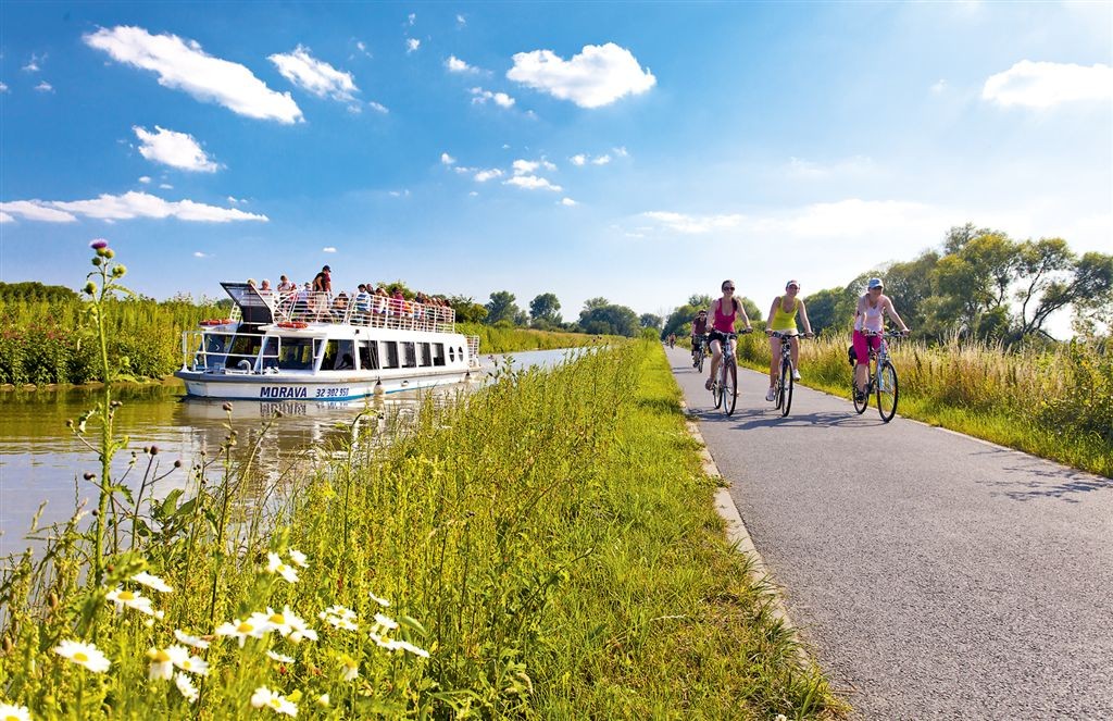 Trochu jiný charakter má páteřní cyklostezka vedoucí podél vodní cesty Baťův kanál. Z Kroměříže do Uherského Ostrohu je vybudováno rovinatou krajinou s remízky lužních lesů 50 km bezpečné cyklostezky. Prohlédnete si památky UNESCO v Kroměříži, v Otrokovicích můžete odbočit do Zlína a prohlédnout si proslulou zoo v Lešné či vyšlápnout na zříceninu hradu Lukova. Úrodné a pohostinné Slovácko láká k prozkoumání místních pochoutek včetně Moravských vinařských stezek na svazích Bílých Karpat či Chřibů, či k návštěvě historických památek, mezi nimiž vyniká hrad Buchlov, zámek Buchlovice, poutní areál ve Velehradu či Archeoskanzen v nedaleké Modré. Více na www.vmnakole.cz.