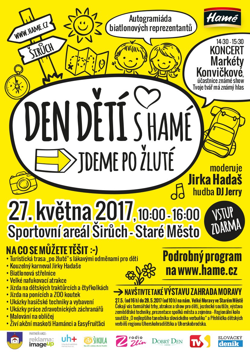 Malí i velcí mohou v sobotu 27. května 2017 zavítat na Den dětí s Hamé, který se již tradičně koná ve Starém Městě u Uherského Hradiště.