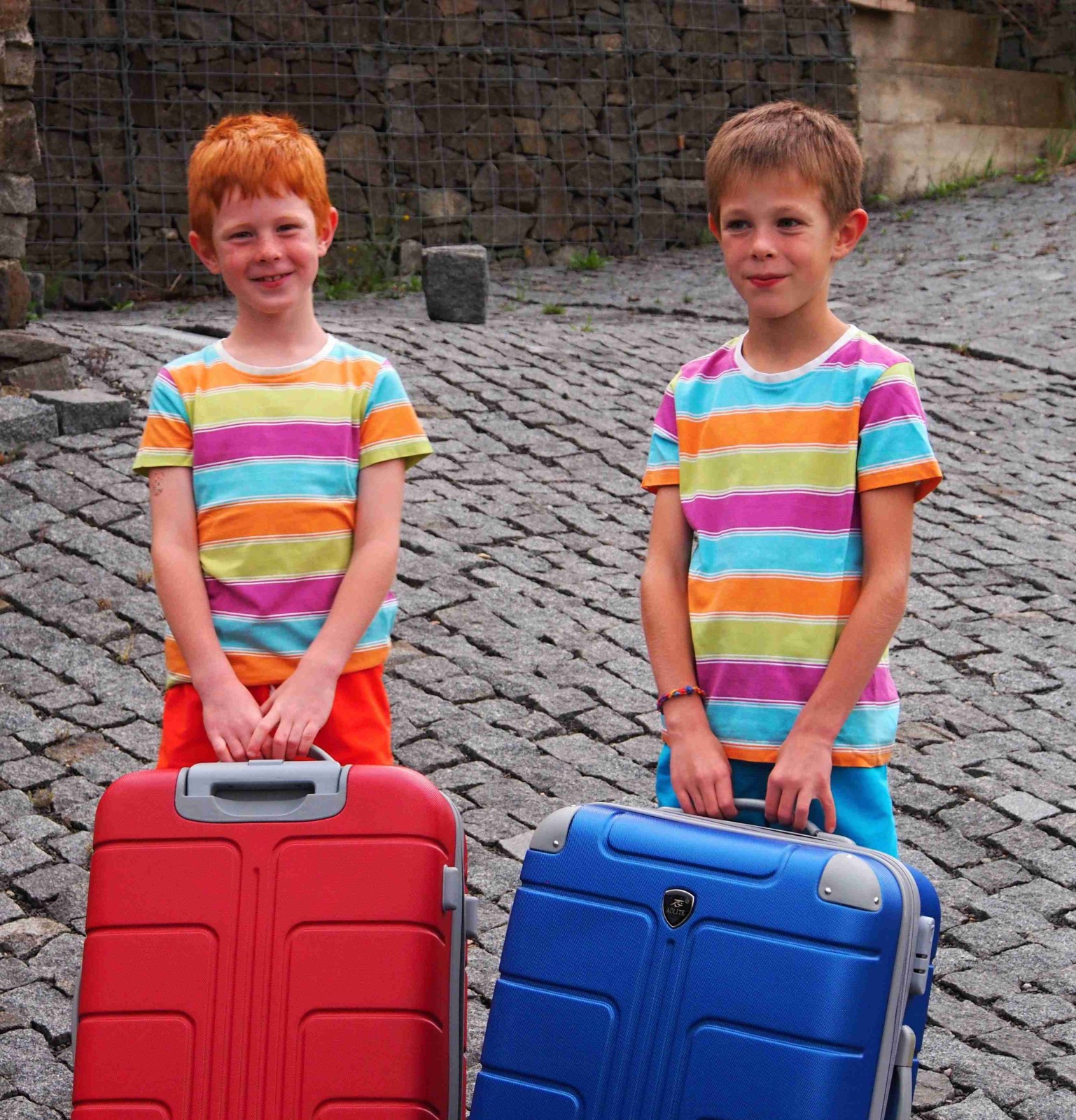 Pokud cestujete s více dětmi, určitě tento nápad oceníte. I taková drobnost udělá obrovskou službu. „Nové triko může být hezký předodletový rituál. Po našich zkušenostech s různými barvami jednoznačně vyhrávají barevné proužky nebo puntíky. Pokud se rozhlédnete po letištní hale, barevné pruhy oko okamžitě přitahují. Doporučuji se vyhnout modré a růžové barvě. Vede oranžová, žlutá, tyrkysová, zářivě zelená. A vedle rychlé orientace, kde ty děti vlastně jsou, šíříte dobrou náladu i Kolem sebe. Budete se sami bavit pozorováním ostatních usmívajících se cestujících." doporučuje Štěpánka Štrougalová.