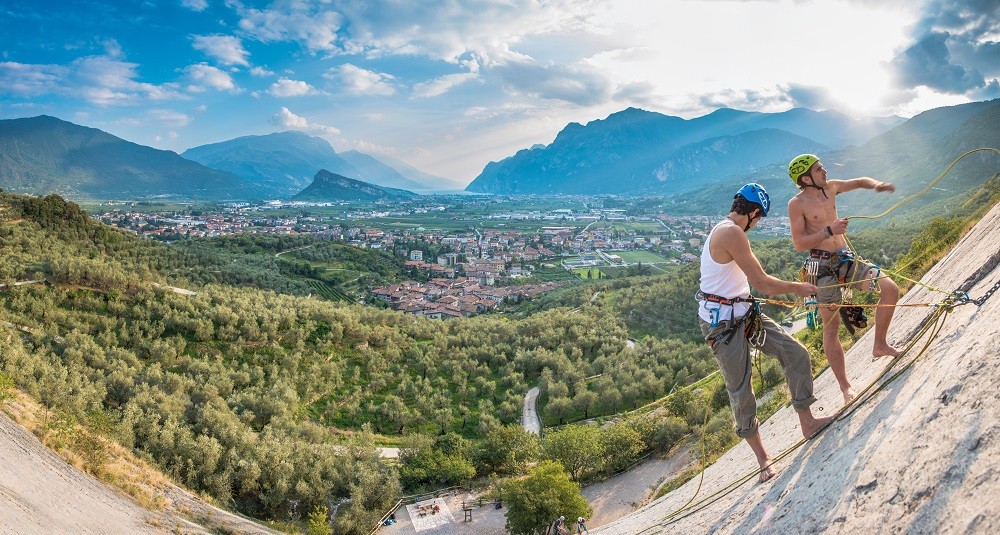 Skály, skalní stěny s výhledem na jezero: Garda Trentino je open-air tělocvična pro horolezce, sportovní lezení - nejkreativnější mezi outdorovými aktivitami.