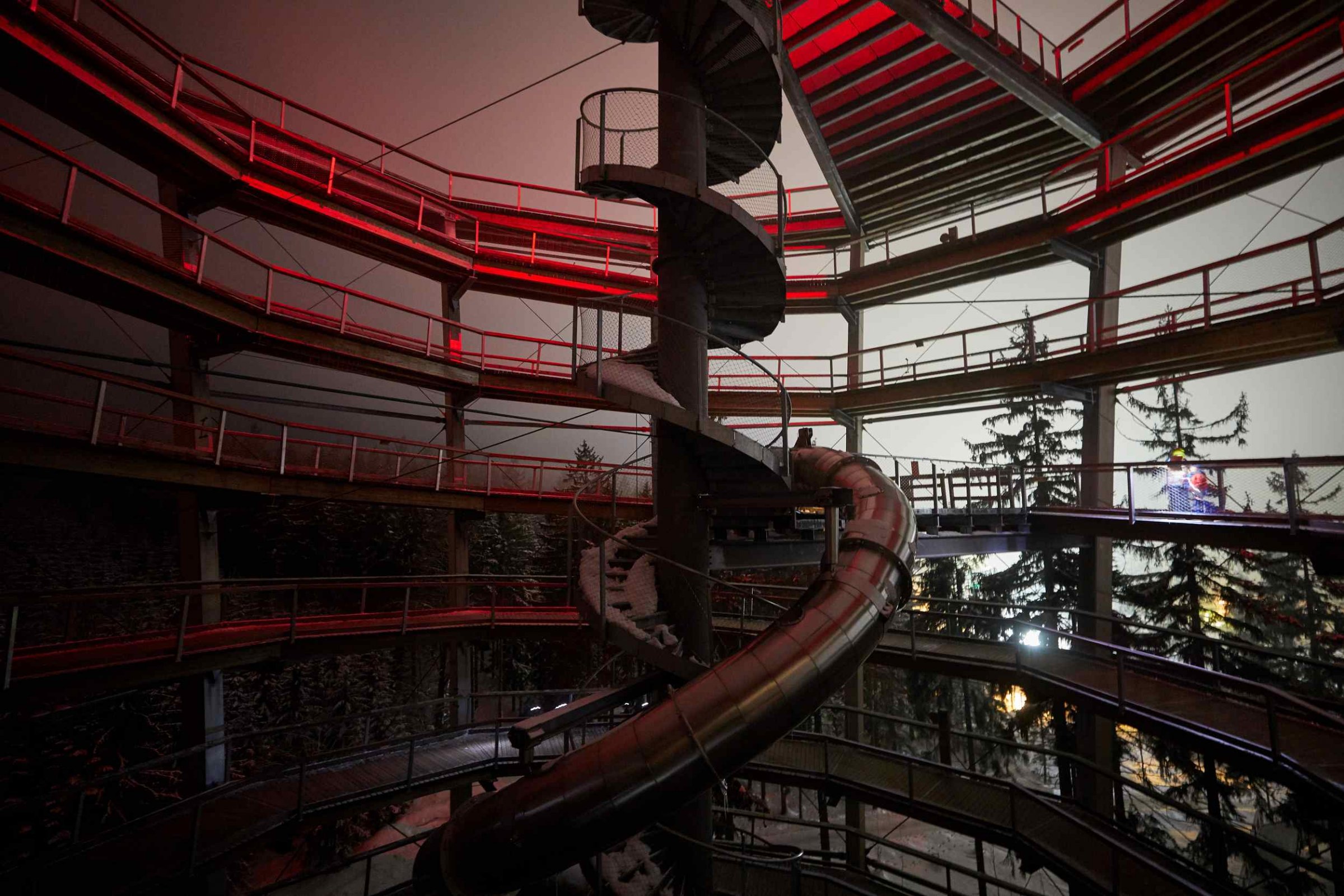 Stezka korunami stromů Krkonoše se nachází na okraji Janských Lázní v Krkonoších. Jedná se o zážitkovou a naučnou Stezku v celkové délce 1 511 metrů, která je zakončena výstupem na 45 metrů vysokou vyhlídkovou věž. Návštěvníci se na trase Stezky vydají od kořenů, přes visutý chodník a unikátní podzemní jeskyni až ke korunám stromů na vrcholu vyhlídkové věže. Na rozdíl od běžného výletu do lesa jim Stezka korunami stromů Krkonoše ukáže les z jiné perspektivy a jedinečná podzemní expozice nabídne možnost prostudovat mikrosvět půdy. Z vrcholu Stezky je možné si vychutnat výhledy do korun stromů smíšeného krkonošského lesa i do krajiny kolem. Cesta dolů pak může být výrazně urychlena jízdou v tobogánu, jehož tubus o průměru jeden metr je dlouhý 80 metrů. Původně byl tobogán určen dětem, ale hojně jej využívají všichni návštěvníci, včetně seniorů. Zatím nejstaršímu jezdci na tobogánu bylo úctyhodných 85 let. Za pěkného počasí lze dosáhnout v tobogánu rychlosti až 30 km/h, za špatného počasí tobogánem sjet možné není. Rychlost, které by bylo možné dosáhnout (s podporou napršené vody), by mohla totiž dosáhnout až 80 km/h.