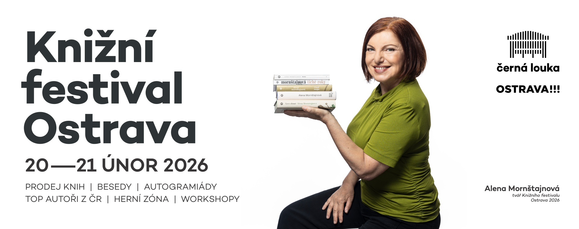 Ostravské výstaviště Černá louka se 20. a 21. února 2026 opět promění v centrum všech milovníků knih. Festival nabídne stovky titulů napříč všemi představitelnými žánry, takže si na své přijdou fanoušci napínavé beletrie, čtenáři literatury faktu i milovníci komiksů a dětské literatury.