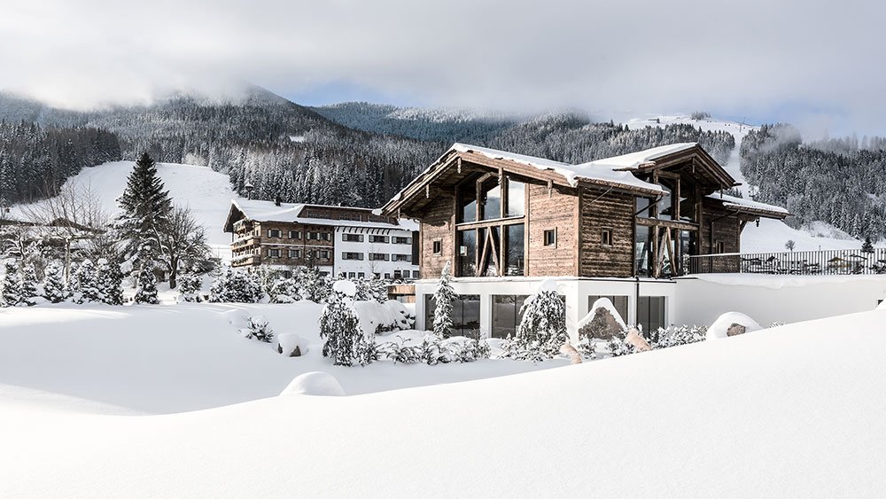 Zvenčí má podobu tradičního romantického horského hotelu, uvnitř však nabízí wellness na té nejvyšší úrovni: sauny mnoha teplot a různých vůní a prostorné odpočívárny, kde lze nerušeně relaxovat – a že tady rozhodně nebudete kam spěchat: všechny sauny i dvoupatrové odpočívárny jsou prosklené a mají naprosto jedinečný výhled na impozantní svět okolních zasněžených Alp.