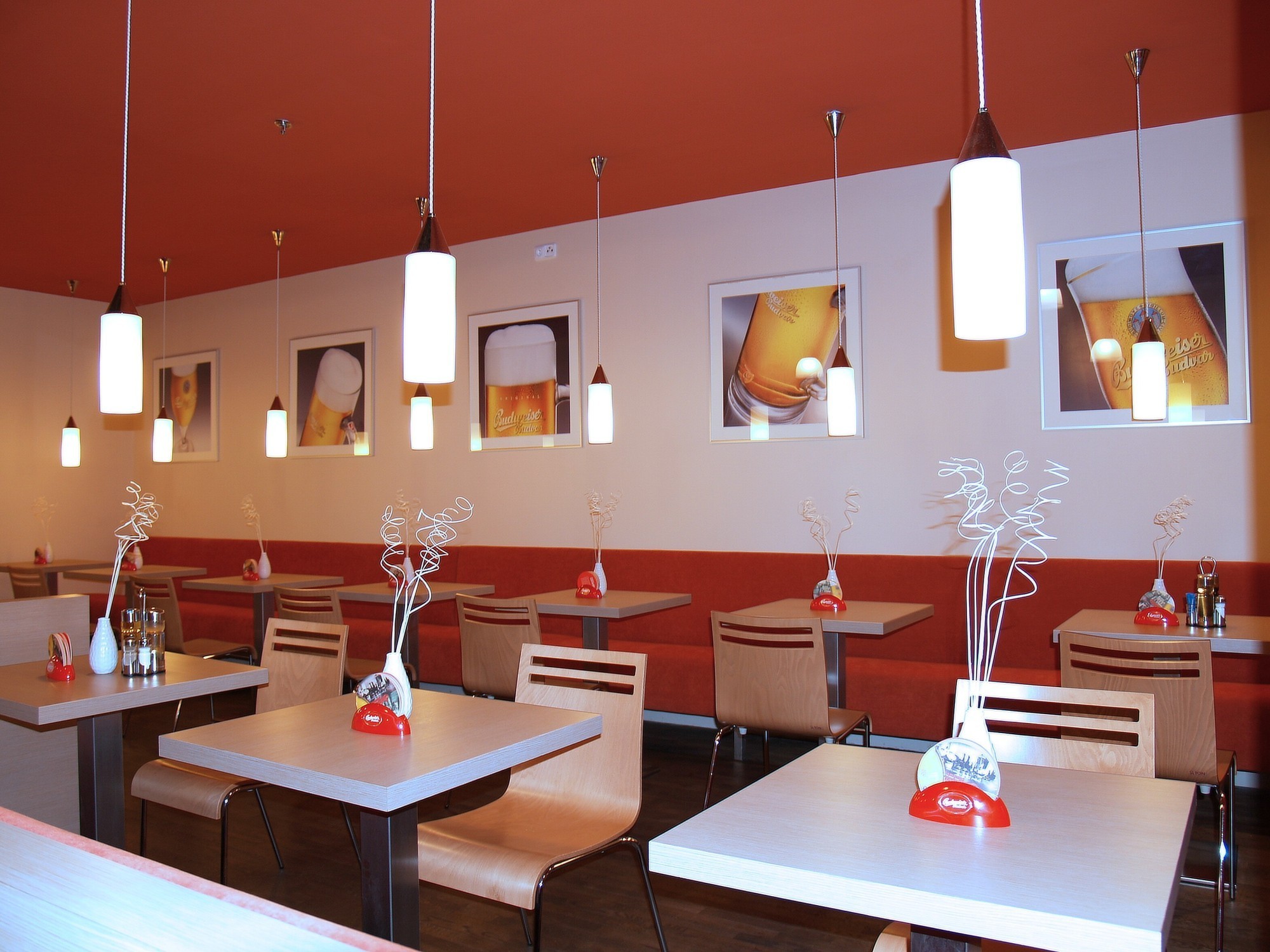 S kavárnou bezprostředně sousedí moderní Restaurant Budweiser Budvar – restaurace se skvělou kuchyní a příjemnou obsluhou. Neformálnímu a svěžímu prostředí, kde se budete cítit dobře „s batohem i s kufrem“, vévodí výrazně oranžová barva a dynamická výzdoba akcentuje zrychlený tep místa. Zvědavé nahlédnutí do jídelního lístku prozradí, že tu najdete českou klasiku i výběr teplých a studených předkrmů, těstovin, mezinárodních specialit i salátů. Myslí tu i na vegetariány i na ty, jejichž žaludek si o cestování „myslí své“. Pro děti je připraven vlastní jídelní lístek a k dispozici jsou dětské židličky a omalovánky. O značce zlatavého moku, který tu čepují, netřeba dlouho spekulovat – pivo Budweiser Budvar tu nabízejí světlé, černé i nealko. A ceny? Denní nabídka je tu od 85,- Kč a pohodlný oběd pro dva tu pořídíte do 300,- Kč.