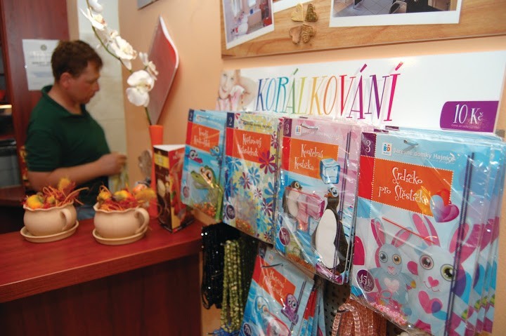 S výběrem nemusíte spěchat. Obsluha vám uvaří kávu a nabídne zákusek. „Mám ráda příjemné nakupování, ke kterému patří dostatek času, a proto chodím k nám do kavárny,“ svěřila se ředitelka BD Hajnice Lenka Škarková. Veškeré zboží si můžete „osahat“ a věřte, že najdete skutečně zajímavé kousky, které v běžném obchodě neseženete. Cena začíná od deseti korun. Pokud vám nabídka zrovna nesedne a máte zájem o korálky, tak si je jednoduše od Hajnických objednejte. Sdělte jim svou představu a nechte se překvapit provedením. „Další možností je, že si koupíte předem navlečené šňůrky korálků a šperk si sami vyrobíte,“ uvedla Kalkusová.