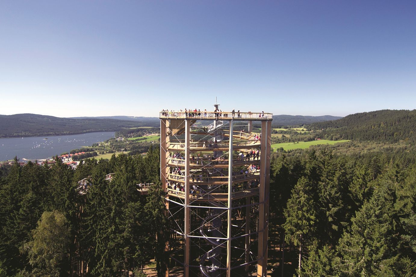 Stezka korunami stromů je zárukou nezapomenutelného výletu. Ti, kteří ji již navštívili, se sem rádi vrací. I proto, že v jednotlivých ročních obdobích vypadá Stezka odlišně. Na jaře tak při procházce 675 metrů dlouhé stezky budou moci pozorovat okolní smíšený les probouzející se ze zimního spánku a vracející se k čilému ruchu. Nejenom okolní stromy a pučící rostliny, ale také hmyz, ptactvo a drobné živočichy. O nich, ale také třeba o hospodaření v lese se návštěvníci dozvědí z didaktických stanic. Stezka si však turisty nepodmanila pouze samotnou stezkou, ale také 40metrovou vyhlídkou. Z ní lze vidět nejenom nad vrcholky stromů, ale také Lipenské jezero, Šumavu či Novohradské hory. Za příznivého počasí pak lze spatřit i vrcholky vzdálených Alp.