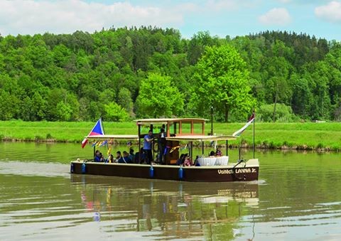 „PRAVIDELNÉ PLAVBY VÝLETNÍ LODÍ“, která Vás doveze z Českých Budějovic přes Hlubokou nad Vltavou až do přístavu v Purkarci: