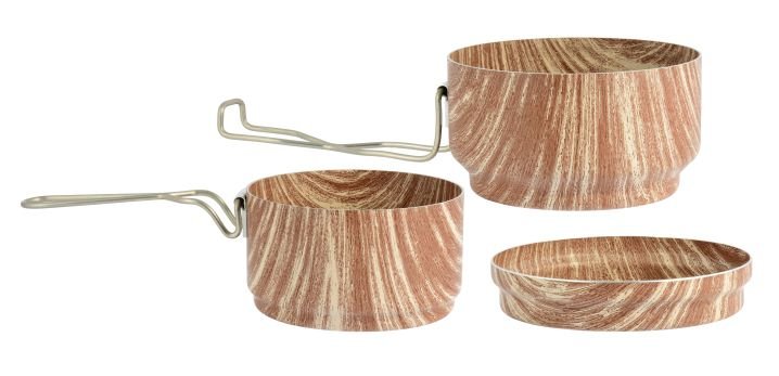 ALB Forming ho vyrábí pro nás již od roku 1947 a to v dvou nebo třídílné variantě z potravinářského hliníku nebo z nerezové oceli. Nádobí z hliníku je velmi lehké, na druhou stranu mnoho lidí má vlivem negativní (a naprosto lživé) reklamní kampani s hliníkem problém. Nerezové nádobí rozhodně více vydrží, ale na cestách je jeho vyšší váha hendikepem. Proto jsme pro vás ALB Forming připravil novinku Ešusy WOOD a STONE.