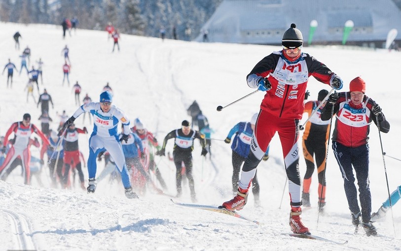 Závody: 22 / 42 km klasicky, 22 km volně a na sněžných kolech, dětské závody