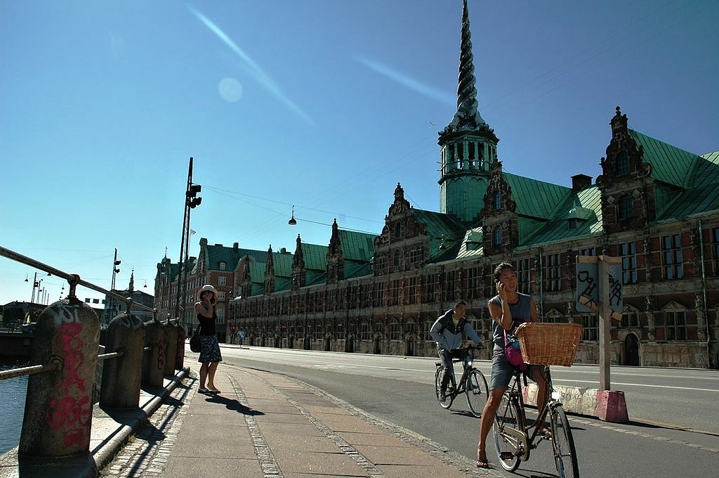 Když trochu šlápnete do pedálů, v centru v úžasu stanete před 127 metrů vysokou budovou Burzy z roku 1640 ve tolik typickém stylu holandské renesance z červených cihel a s věží, kolem níž se obtáčejí čtyři draci – symboly to někdejšího výnosného obchodu s Čínou.