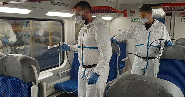 „V rámci boje s koronavirem jsme zařadili do běžného čistění souprav intenzivní dezinfekci, která odstraňuje riziko přenosu viru během cestování našimi spoji,“ říká Tomáš Mohr, ředitel odboru provozu osobní dopravy, a doplňuje: „V rámci výchozího, vratného a základního úklidu takto denně ošetříme tisíce vozů, které vypravujeme po celé republice. Úklidové firmy se zaměřují především na dezinfekci ploch, kterých se lidé dotýkají, jako jsou madla, kliky nebo tlačítka.“ Například Oblastní centrum provozu Střed takto dezinfikuje více než 1 200 vozů denně. V celé síti Českých drah je to pak dohromady přes 2 000 vozů každý den.