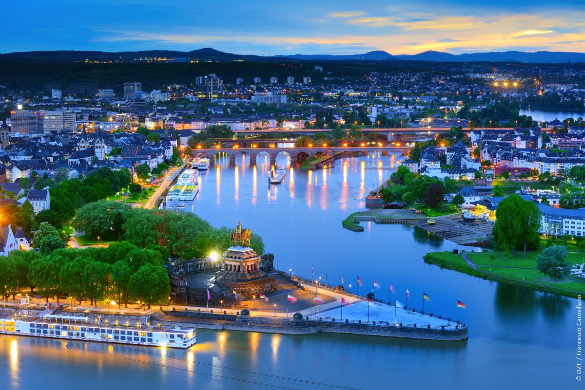 Rýn je nejdelší německou řekou a na jeho březích se nachází mimořádné množství památek. V neposlední řadě protéká čtyřmi pozoruhodně krásnými vinařskými oblastmi Německa: Středním Rýnem, Porýním, Porýním-Hesenskem a Porýním-Falcí. Jeden z nejpůsobivějších německých úseků, Rýnská romantická stezka, vede z Kolína nad Rýnem do Mohuče. Trasa vede podél Rýna kolem malebných měst, četných hradů, zámků a vinařských vesnic. Na této trase stojí za zastávku Deutsche Eck (soutok Rýna a Mosely) v Koblenci, Marksburg a nejvyšší studenovodní gejzír na světě v Andernachu. Mezi Koblencem a Bingenem je údolí Rýna hluboce zaříznuté a protéká mezi vysokými soutěskami. Najdete skálu Loreley?