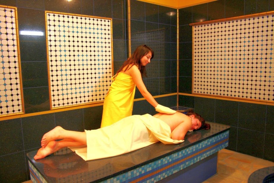 Hamam – obdoba tureckých lázní. Místnost je vybavená sprchou, umývadlem a masážním keramickým stolkem. Zde se návštěvníci vzájemně ošetří mýdlem, kartáčem, opláchnou studenou vodou a namasírují.