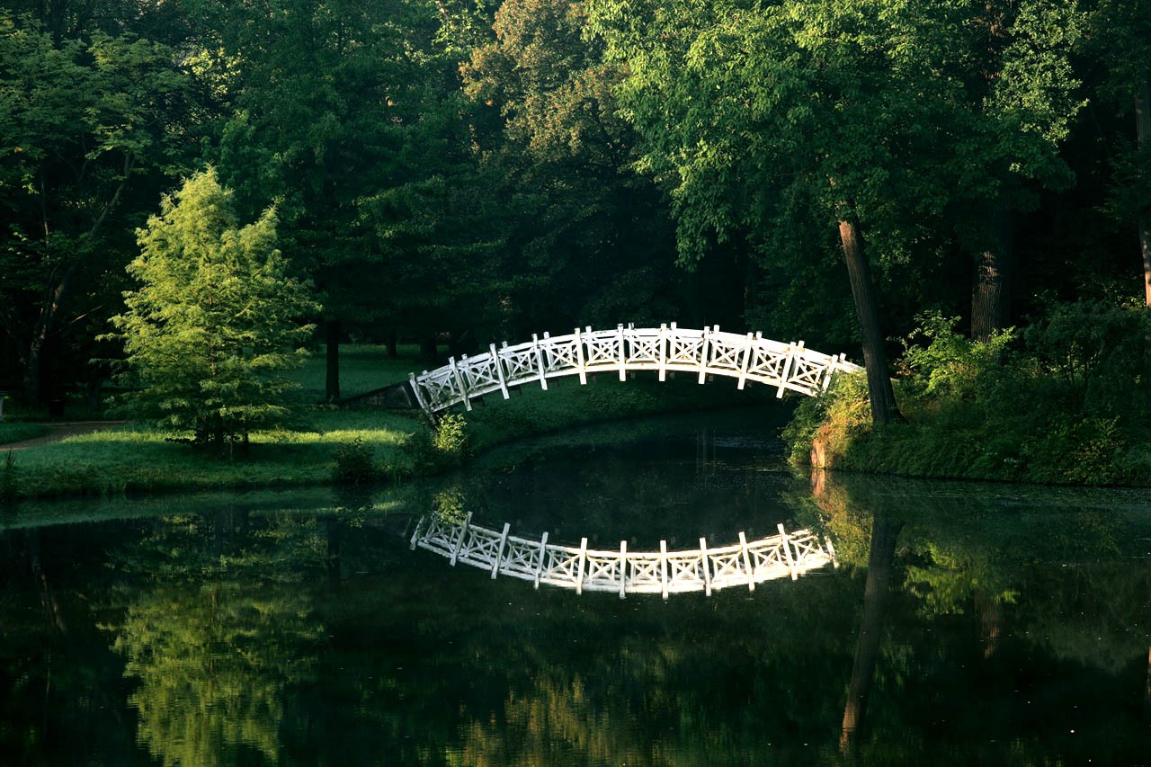 Voda je základním elementem této KRAJINY, jednotlivé části parku jsou propojeny sítí stezek vedoucích přes mosty a uměle vybudované kanály, které umožňují i plavbu na lodích. Co most, to originál dalo by se říct.