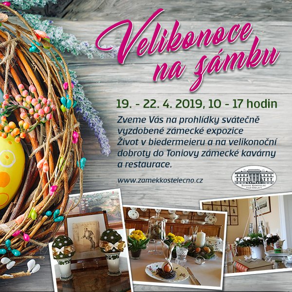 Vydejte se na návštěvu do Nového zámku, kde floristka Andrea Vanická pro vás chystá v zámecké expozici Život v biedermeieru speciální velikonoční výzdobu. Prohlídky zámecké expozice se konají každou hodinu. Poslední prohlídka začíná v 16 hodin.