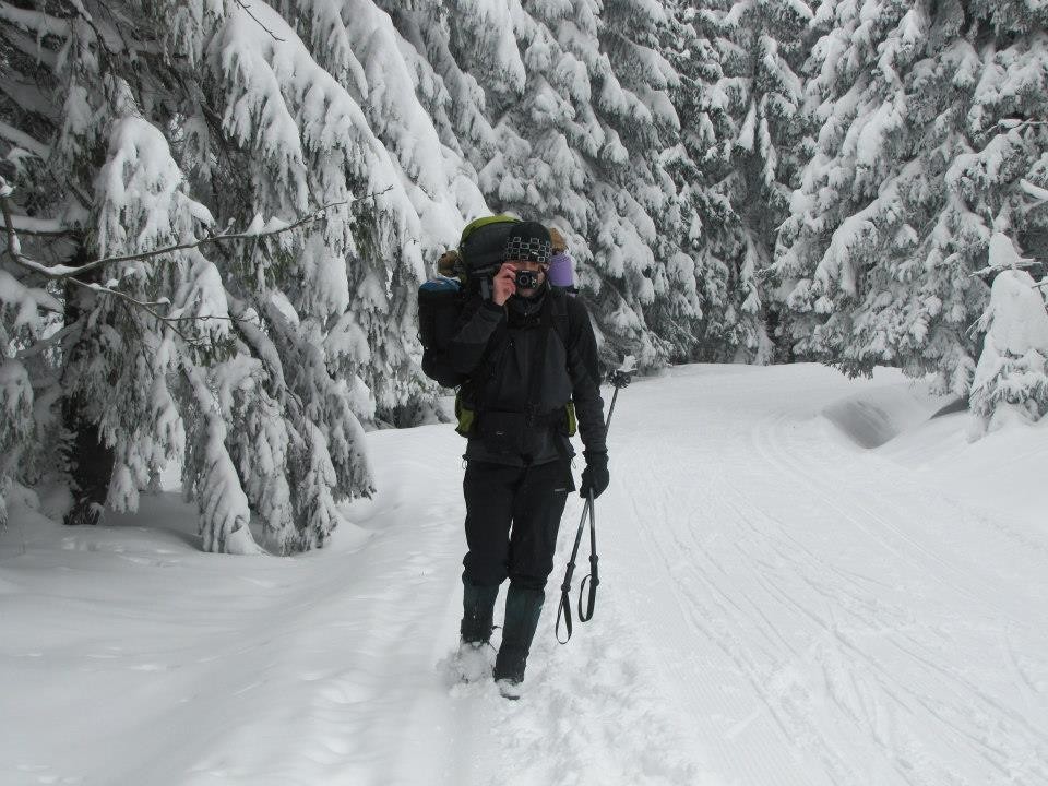 V zimě se Ježíškova cesta stává součástí pečlivě upravovaných okruhů pro běžkaře, z nichž ten náš nejznámější - Lukáš Bauer na Božím Daru bydlí. Když jsme přemýšleli jaké místo zvolíme pro další ročník naší akce, byl právě tento kout krušnohoří jasnou volbou. Jen pro vysvětlení - tou akcí myslíme to, že si parta čtyřicátníků sbalí do báglu stan, spacák, karimatku a něco na zub a vyslyší pobídky svých drahých poloviček a jde se „zahrabat”. Letos jsme museli čekat až do 23.2. než byly podmínky opravdu zimní a mohli jsme vyrazit. Již při výjezdu z Karlových Varů pěkně chumelí a tak jsme rádi, že se nám nahoře o 600 m výše stele nová čerstvá peřina. Na „Božáku” jak tady Boží Dar familierně nazýváme je nádherně. Sněhu asi 80 cm, zima, lyžaři… Němci se trousí do hospod za levným knedlem a jen nechápavě zírají na 4 blázny co navlékají návleky, nahazují batohy a za vrzajícího doprovodu bot a trekových holí mizejí na pláně směrem na Myslivny. Potkáváme poslední běžkaře, kteří spěchají aby byli ještě za světla v teple chat a domovů. Místo, které jsme si vyhlídli na táboření se nachází asi 3 km od městečka. Jde se dobře, nefouká, cesta je prohrnutá a když pak u jedné ze zastávek ježíškovy cesty odbočujeme jsme rádi, že můžeme pokračovat po upravené běžecké stopě. Letos jsme si totiž nevzali sněžnice, jaký rozdíl proti loňské akci, kdy jsme se v nich brodili hlubokým sněhem na Tisovský vrch. Za necelou hodinku jsme na místě, poblíž velkého krmelce a můžeme začít budovat tábor. Ke slovu přichází lavinová lopata a čelovky, protože se začíná stmívat. Sníh je krásný prachový, příjemně se s ním pracuje a cca. po 30ti minutách máme vyhrabaný ve sněhu čtvercový zákop pro naše dva stany Jurek a Coleman. Stany stavíme již za úplné tmy a ani se příliš nezdržujeme jejich kotvením - je stejně bezvětří a navíc v takovém sněhu není ani kotvění klasickými kolíky možné. Teplota klesá k -8°C a my se těšíme na příjemně strávenou noc v našich spacácích. Dva z nás se pro letošní akci vybavili spacáky Pinguin Expert, které by jim měly zajistit pohodovou noc. My máme své osvědčené spací pytle Coleman Latitude X1150, ve kterých jsme loni spali i v teplotě o pár stupínků nižší. Někteří z nás spí na samonafukovacích karimatkách někdo zvolil Evazote karimatku, která se nakonec ukázala jako dobrá volba, protože má vynikající izolační vlastnosti a je lehká. Ležení je připraveno a tak si před spaním můžeme dopřát hodinovou zdravotní procházku noční planinou a po návratu po půlnoci uléháme do stanů a za chvíli usínáme. Absolutní tma a ticho přerušované jen šuměním vloček na plachty stanů je naší vytouženou odměnou.