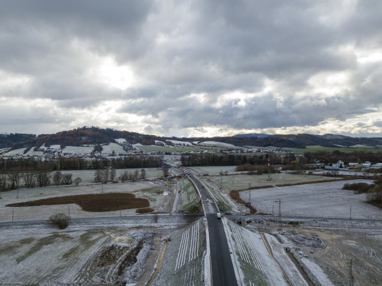 Bludov – Šumperk – Stavba obchvatu z nadhledu, 25.11.2023