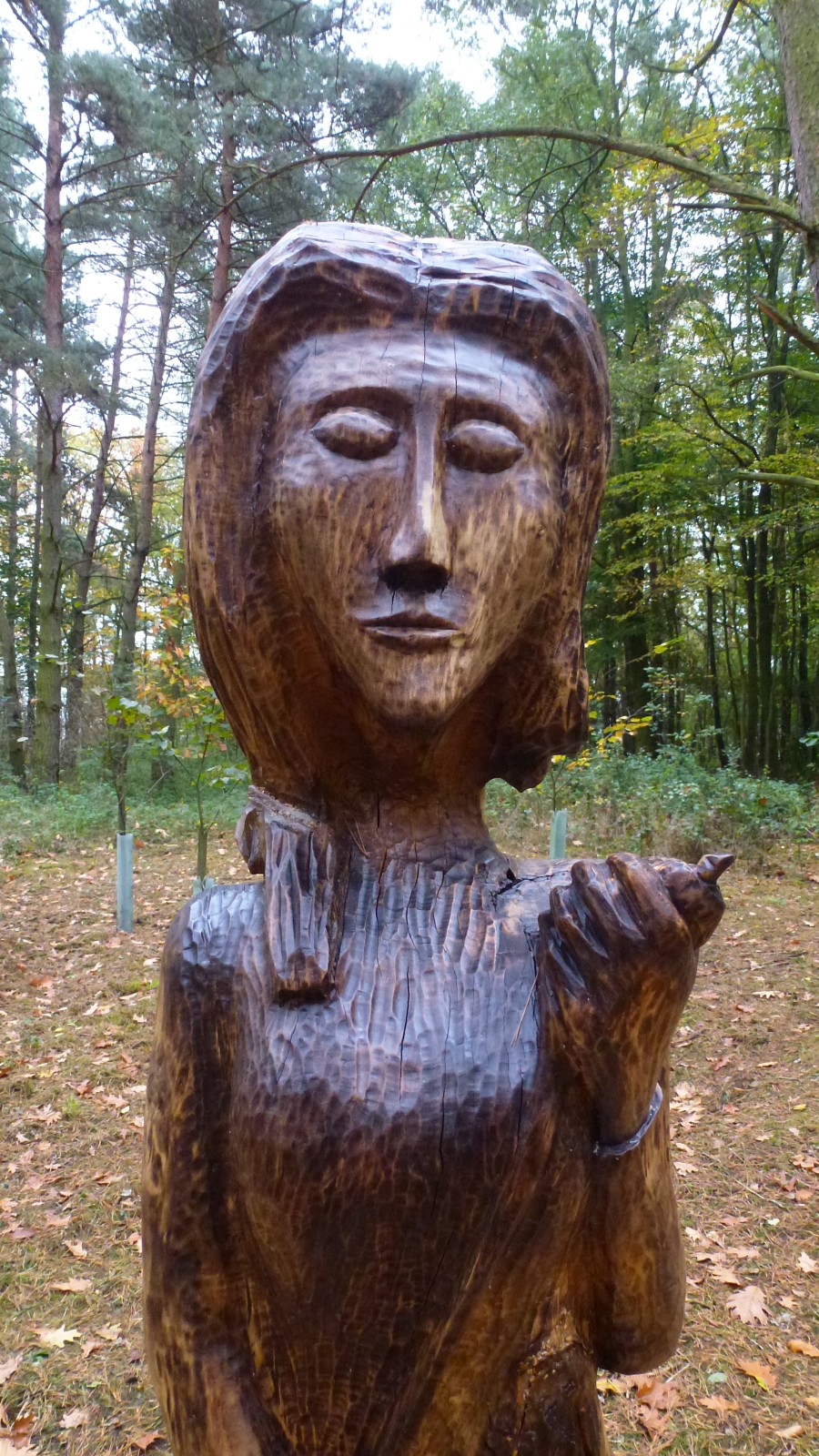 Bohyně Mokoša-dřevěná socha v zalesněném pahorku