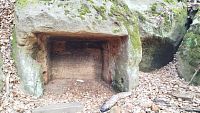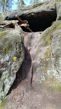 Dvě jeskyně v pískovcových blocích nad kokořínským dolem.V době třicetileté války sloužily jako útočiště lidu před Švédy.V té době byly uměle rozšířeny.