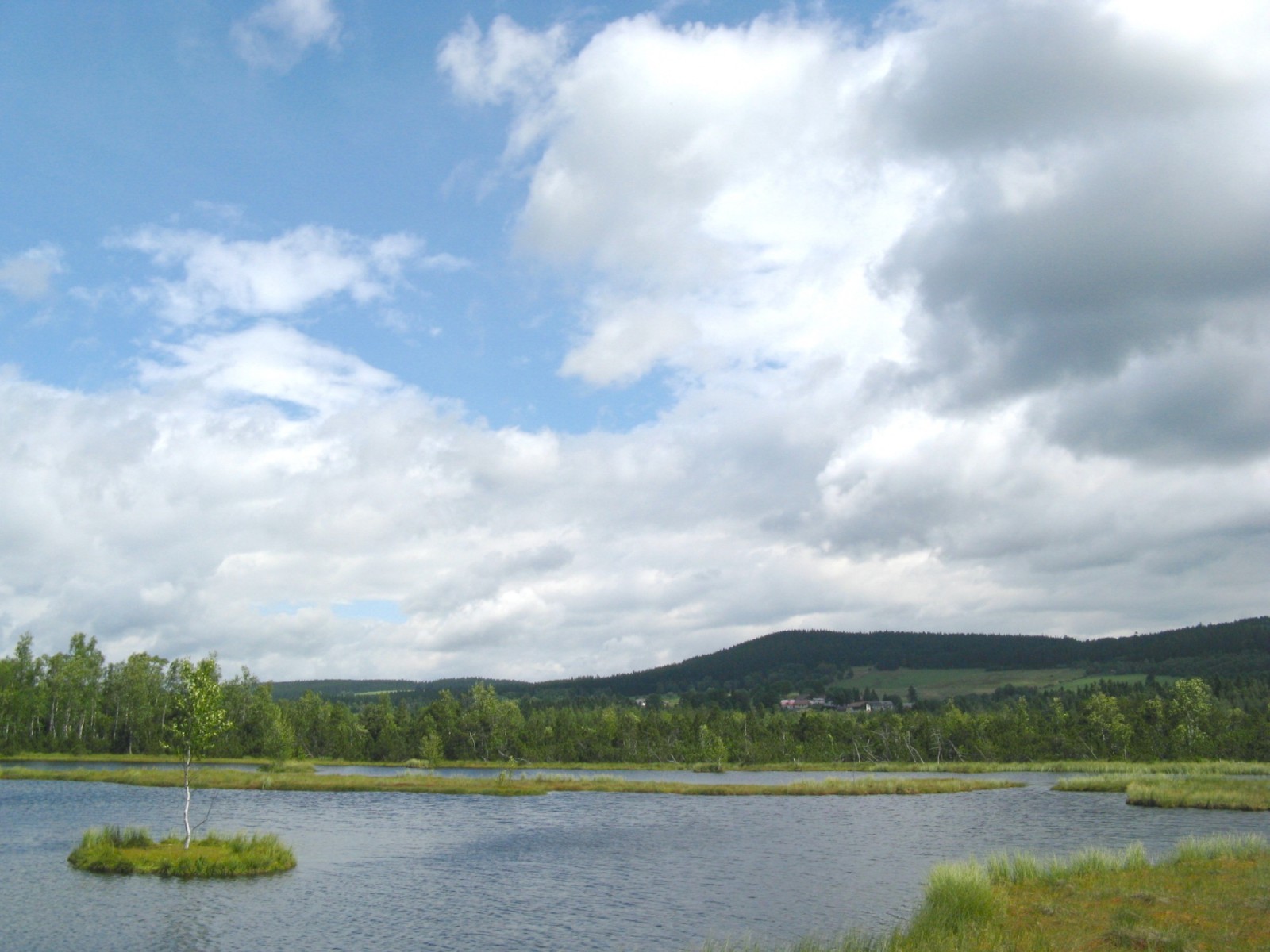 Chalupská slať - výhled přes jezírko na Nový Svět