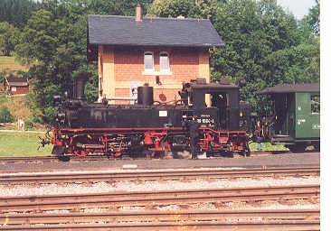 Lokomotiva U99.1 stojí ve Steinbachu u vodárny