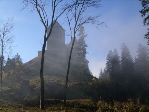 Týden na Šumavě - 3. den: Hartmanice - procházka obcí; okruh 9 km: Kašperské Hory (radnice, pivovar, kostel sv. Markéty) - hrad Kašperk - zřícenina hradu Pustý hrádek s vyhlídkou - Žlíbek - Kavrlík - Kašperské Hory (středověká úpravna zlaté rudy)