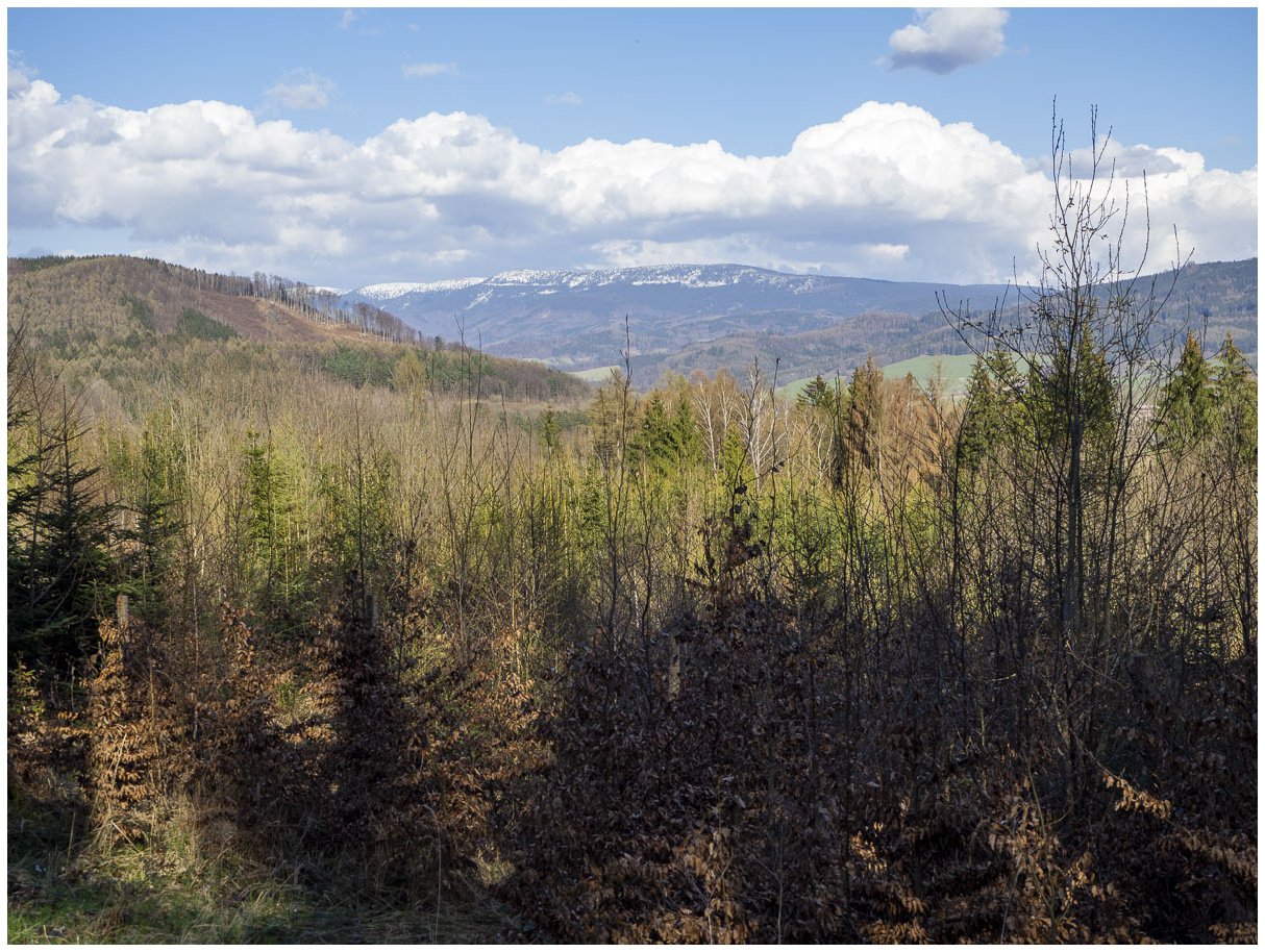 Původně jsem sice chtěl Bukovku objet a projet si kolečko k Dianě, ale když jsem cestou viděl ještě ty zasněžené vrcholky Velké hřebenovky, změnil jsem plán na vrchol. Beztak jsem loni rozhlednu vynechal, což je skoro trestuhodné. Sice bylo poněkud větrno, ale vyhlídka jako vždy skvostná.