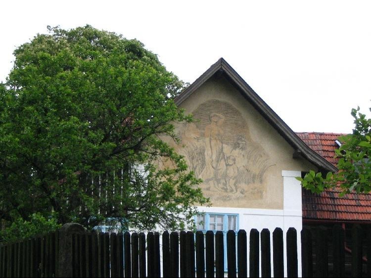 Žnečka-Max Švabinský: Toto sgrafito na průčelí Pecháčkova statku bylo namalováno v roce 1911.