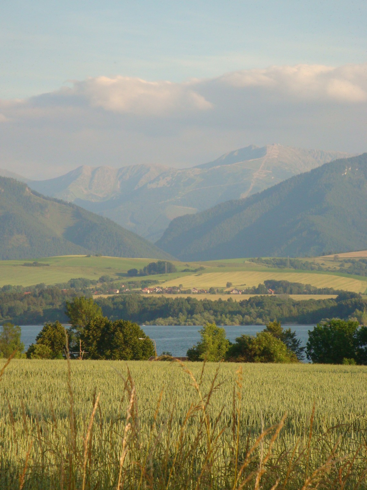 výhled přes pole a Liptovskou Maru na Chopok (2024m.n.m)