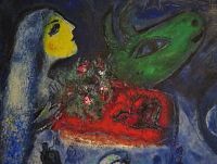 Marc Chagall se narodil jako Mark Zacharovič Šagal i Moisej (Mošva) Chackelevič Šagal a jeho originální umělecký styl kombinoval expresionismus, symbolismus, fauvismus, surrealismus i kubismus. Jeho obrazy vynikají zářivými barvami, pozoruhodnými kontrasty a nespoutanou fantazií. V jeho dílech se postupně objevuje nejen rodná vesnice, Židé, světová válka, náboženství i mystika, ale také láska, rodina a radost ze života.