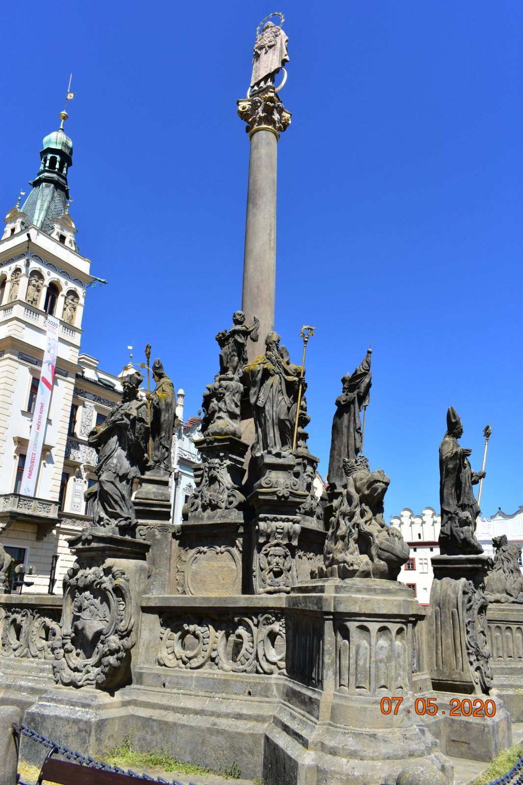 Raně barokní Mariánský sloup se 4 svatými patrony království Českého z konce 17. století,